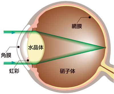 黒目の部分に当たる角膜は、通常きれいな球形ではなく卵形をしています。