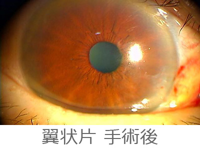 翼状片が黒目に侵入してくると、乱視が増えたり、視力低下をおこすので、ある程度の所で手術をして取り除きます。